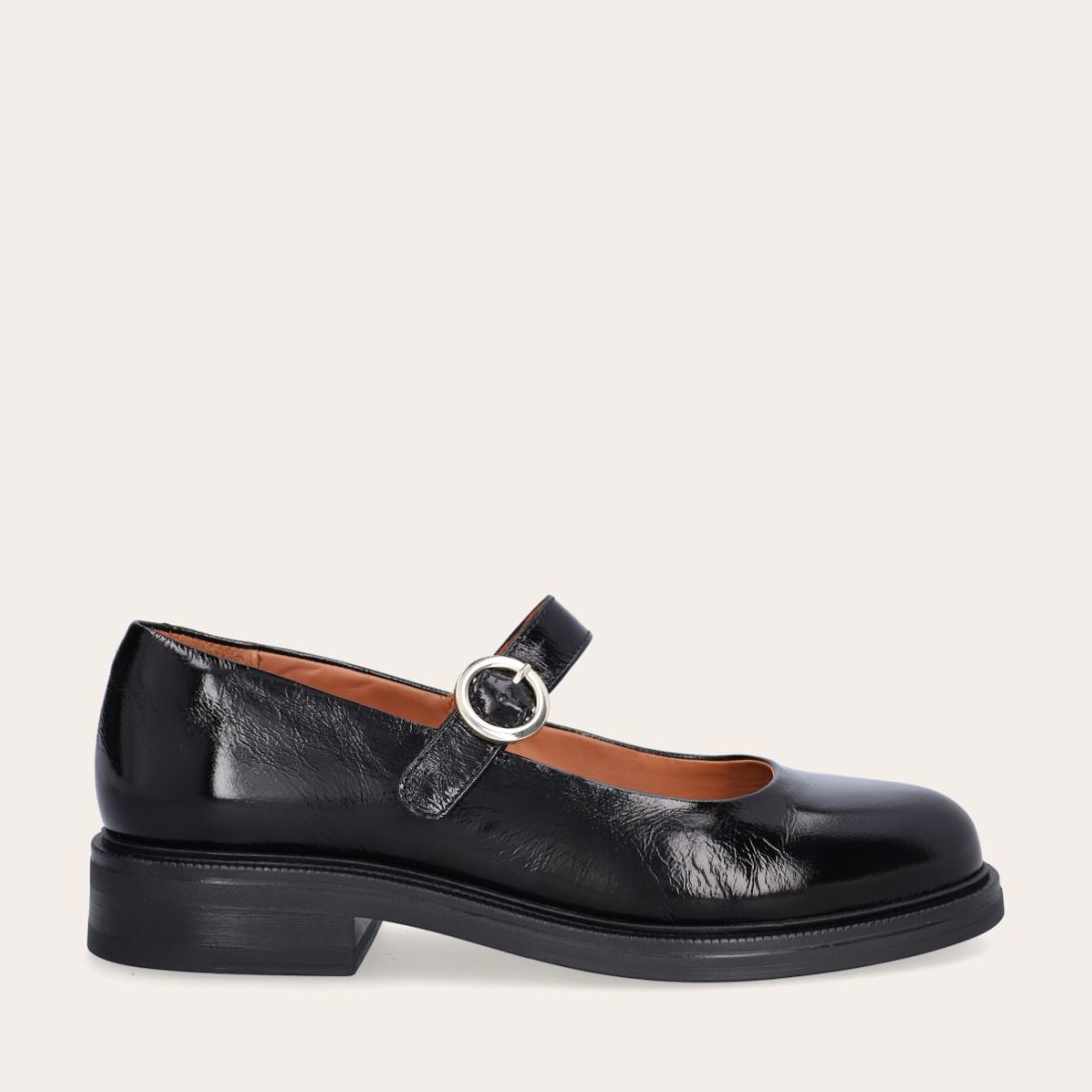 Håndlavede loafers i mørkebrunt laklæder med rund snude. Loaferen er dekoreret med en læderrem med sølvdekoration på forfoden. Loaferen har også piping på forfoden og bagpå for ekstra dekoration.