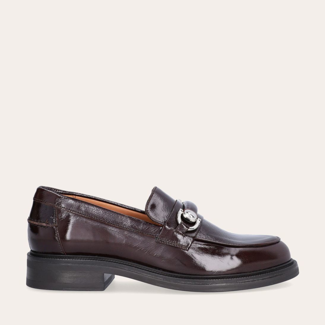 Håndlavet desert boot med snørebånd, udført i lakeret skind med rund tå. Farven er en varm, smuk kastanje-bordeaux, en signatur-nuance i denne efterårskollektion. Den er dekoreret med syninger rundt langs fronten og har en sål af rågummi.