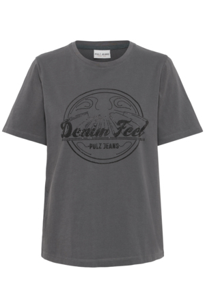 Pulz Jeans har designet denne smukke skjorte. Den er let transparent med et tone i tone blad mønster. sten der glimeter fint i lyset. Skjorten har krave, manchet på ærmerne og er fyldt med glimtende sølv sten.