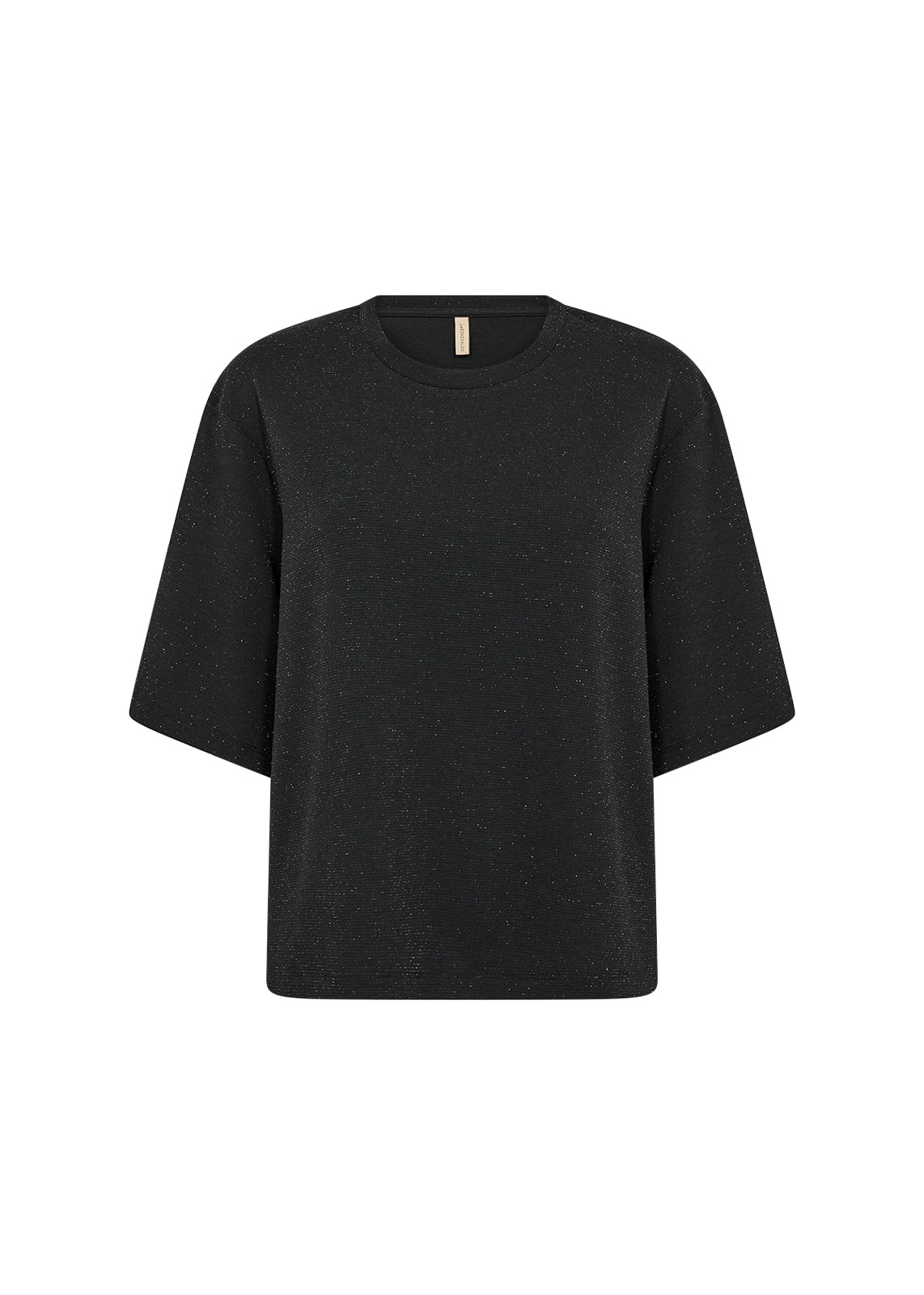 Super smuk T-shirt fremstillet af 50% LENZING™ ECOVERO™-viskose, 42% genbrugspolyester, 5% metal og 3% elastan. Den har en klassisk rund halsudskæring og subtile metalliske tråde, som giver et strejf af glitter. Style den sammen med skræddersyede bukser eller en denimnederdel for et cool og elegant look.