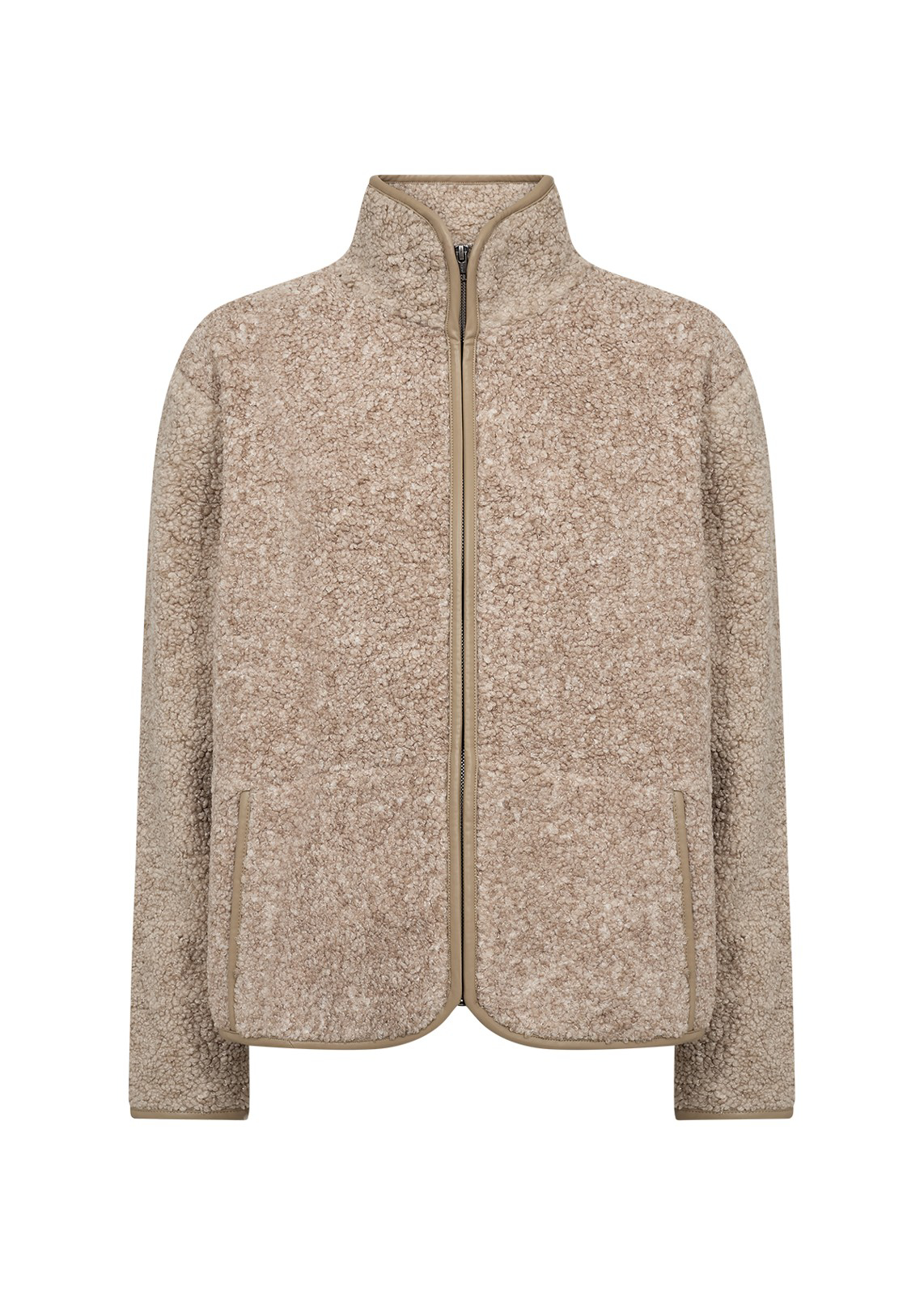 Cool og lækker Marta sweatcardigan. Et must have i din garderobe, med dens smarte sporty look og gode komfort. Cardiganen har en lille høj hals og lynlås lukning foran og en loose pasform. Den er med elastik i taljen og på ærmerne, bagpå har den en fed skrift, som går igen på det ene bryst.